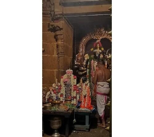 The temple is believed to have been renovated by the Pallavas of the late 8th century CE, with later contributions from Medieval Cholas and Vijayanagara kings. The temple has three inscriptions on its walls, two dating from the period of Kulothunga Chola I (1070–1120 CE) and one to that of Rajendra Chola (1018-54 CE). A granite wall surrounds the temple, enclosing all the shrines and two bodies of water. There is a four-tiered rajagopuram, the temple’s gateway tower, in the temple.