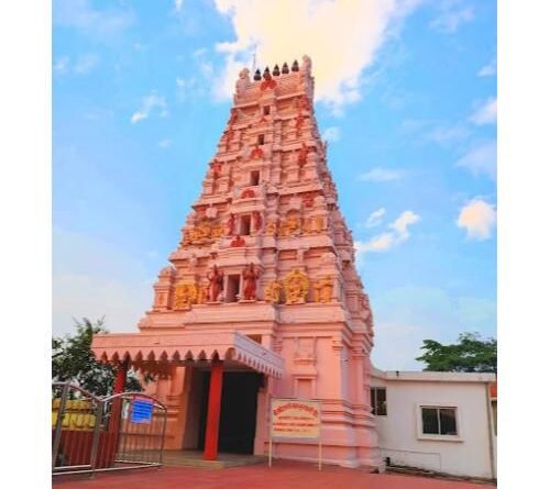 This temple was founded in 1978 by Swami Rangarajan and follows the typical Dravidian style of architecture. It is a magnificent sight to see with its five-tiered Rajagopuram (the main entrance tower) standing at a towering height of 64 feet and decorated with 5 Kalasams (spires).