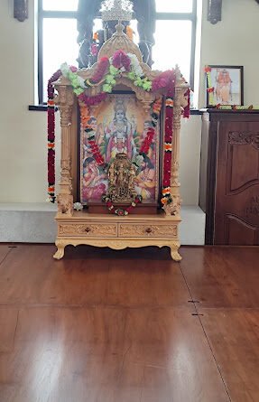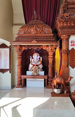 The Burma Teak wood was purchased in December 2015 from reputed and licenced timber yard. The construction and sculpting commenced in January 2016. All the sculpting was done by famed sculptures from Rajasthan and Bengal. At one time nearly 30 sculptures were working long hours to complete the structure by end of April 2016. The marathon task that normally takes 12 months was completed as planned in 4 months. On instructions of P.P. Sri Swamiji Prasad visited Ahmedabad and approved the temple. The temple was dismantled, all pieces appropriately labelled, packed and boxed ready to be shipped to UK following appropriate fumigation treatment.  Two containers 40 feet and 20 feet size were loaded from Mundra port, India and arrived and received at Felixstowe port, UK on 4th June 2016.  The BoT appointed Maine freights Ltd to clear customs and deliver at the centre.