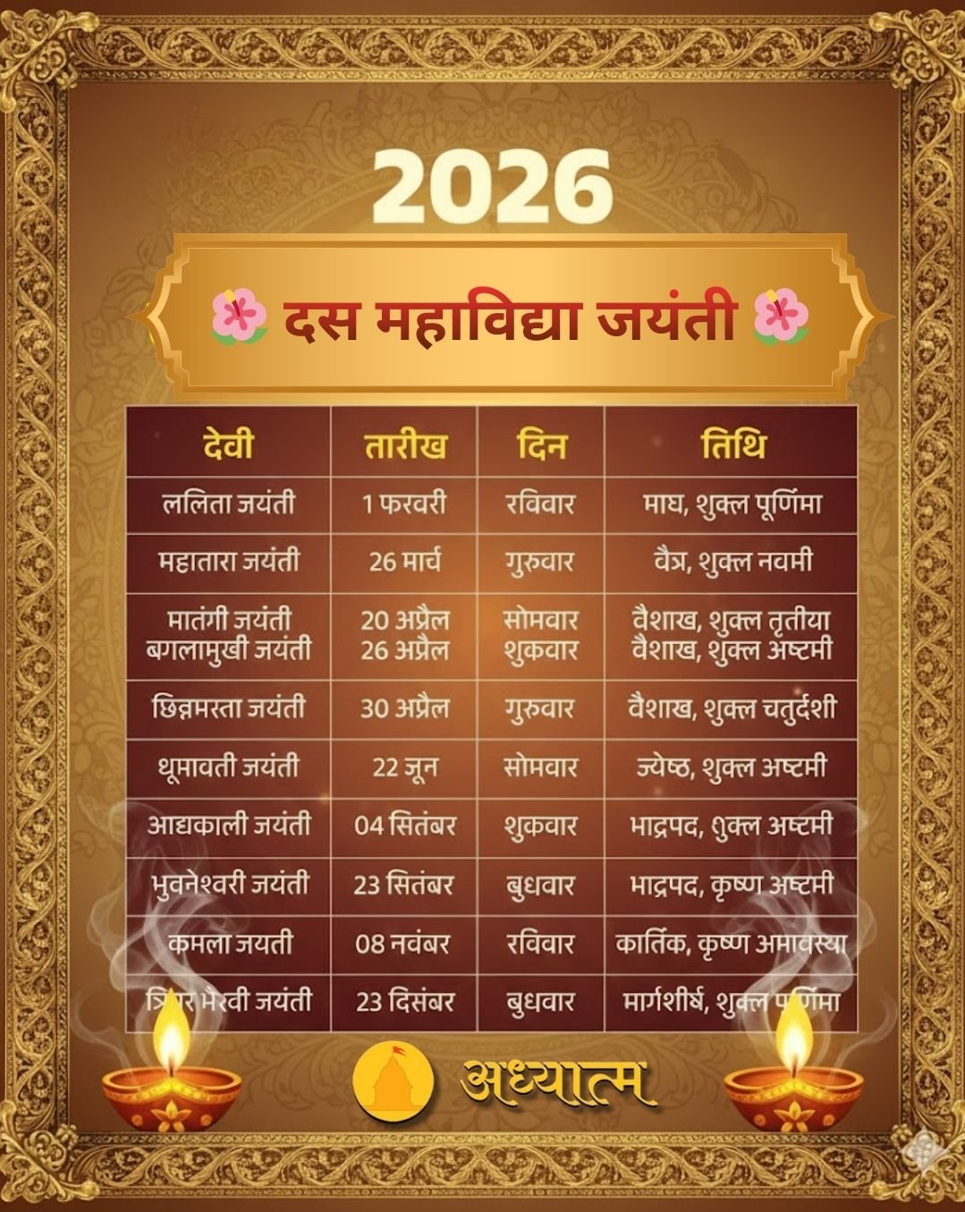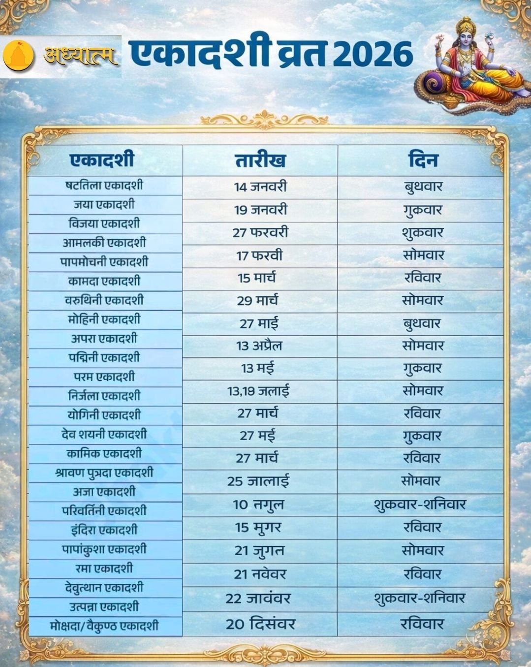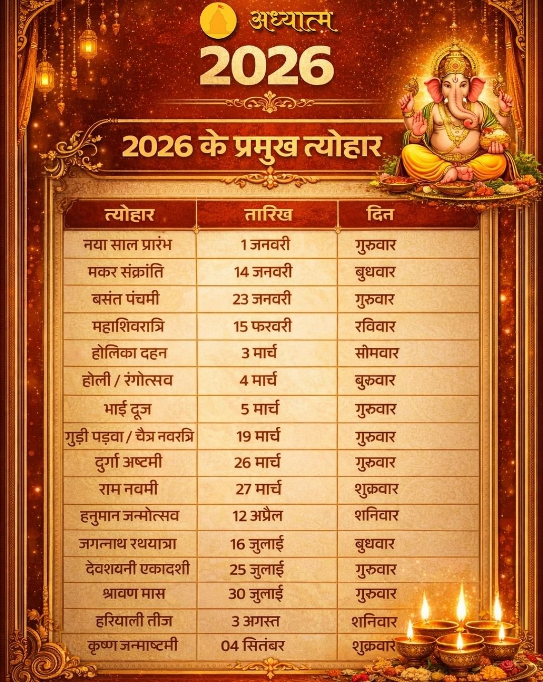 ॥ Hindu Parv & Vrat Calendar 2026 ॥