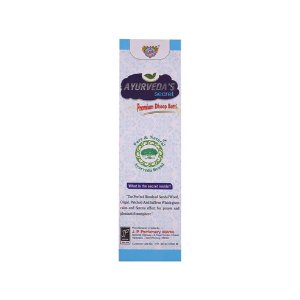 ” AYURVEDA’s SECRET ” – What is the secret inside? –> “The perfect blends of Sandal Wood, gugal, Patcholi, And Saffron Which give a calm and serene effect for prayer and a pleasant Atmosphere.”