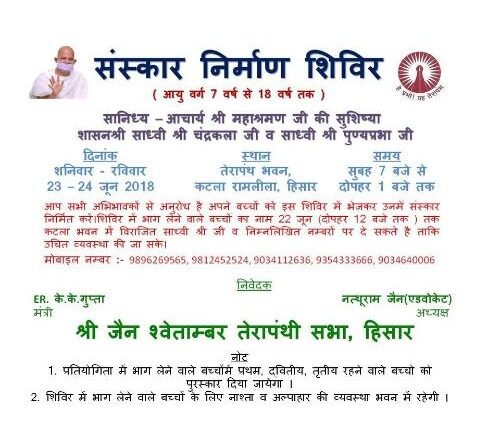 Shri Jain Shwetamber Terapanthi Sabha, Terapanth Bhawan, Katla Ramlila, Shastri Nagar,Hisar,Haryana