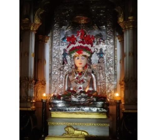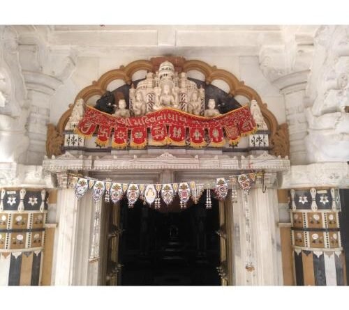 It is stated that this place at one time was famous as Padmavati city. From plenty of broken art creations and ancient idols recovered from fields and ponds in this area, it is clearly evident that this place is very ancient and at one time it may be having many Jain temples. The present beautiful and celestial idol was discovered in the field here while digging a well in Vikram year 1930, which on Magh Sukla 10 in Vikram year 1943 was ceremonially installed among scenes of great festivity in this newly constructed beautiful and magnificent temple. It is stated that when the well was being dug in the filed, farmers used to hear sounds from somewhere, the exact location of which could not be guessed. As soon as, on digging, the idol appeared, the sounds stopped suddenly. The idol is like female both pretty and attractive. Such an ancient idol of Sri Mallinath Bhagwan in female like face is nowhere to be seen.