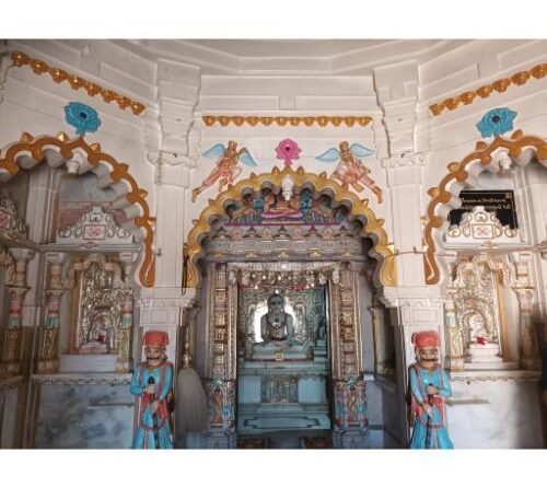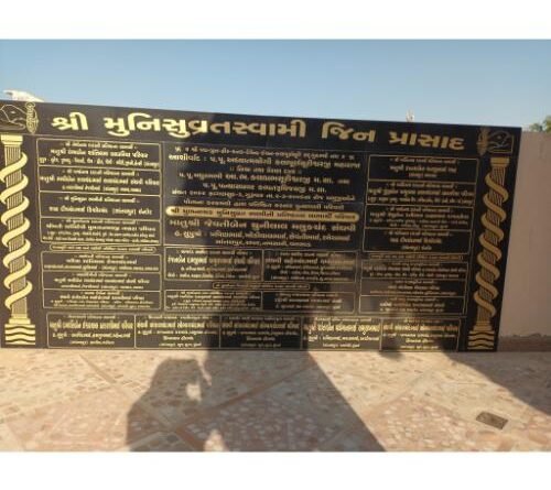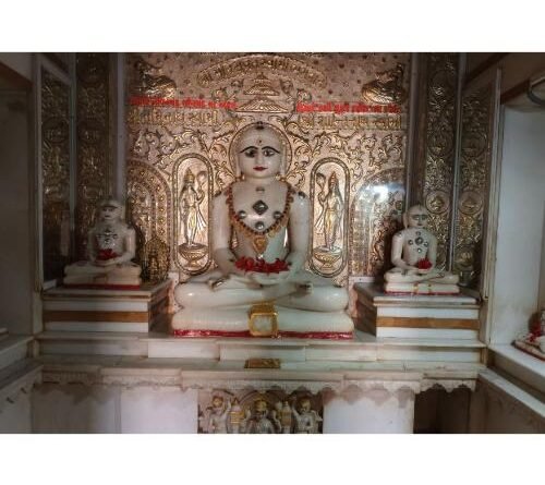 Where Munisuvrataswami is the main deity, Shri Neminath and Shri Shantinath Prabhu are seated in the main sanctum sanctorum of that Jain temple. Small stone images of Sri Parshvanatha (02), Sri Adinatha, Sri Munisuvrataswami, Sri Adinatha, Sri Sumatinatha and Sri Shantinatha Prabhu are placed on the left and right of the main sanctum sanctorum.