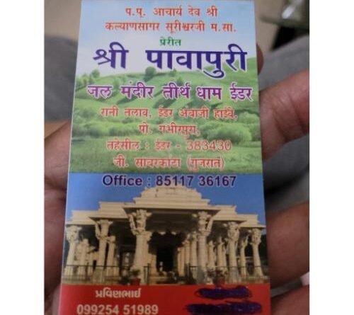 GujaratJain Temple Shri Pavapuri Samet Shikhar Tirthdham, Gambhirpura, Idar,Sabar Kantha,Gujarat October 3, 2025 Shubham 87910 ShareGood Jain religious place with staying facilities available . Also bhojanshala facilities available. Nice and quiet place. Munisuvrat dada temple is there.