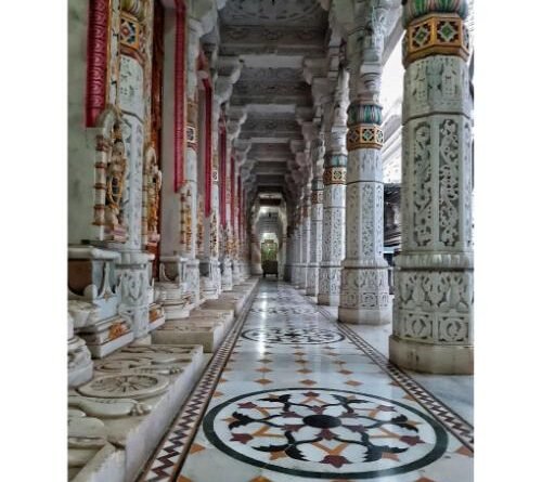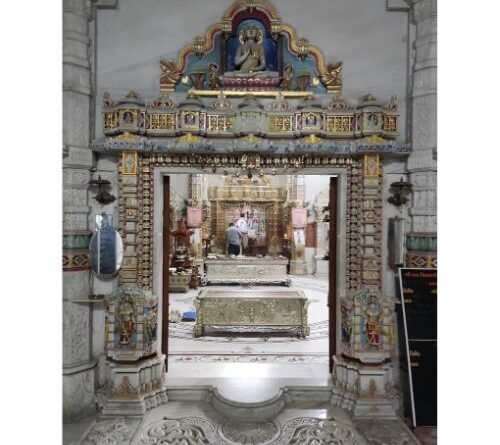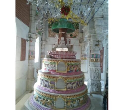 The temple complex houses Siddhachakra made of marble dating back to VS1631 and the Lord Adinatha temple has artistic depictions.