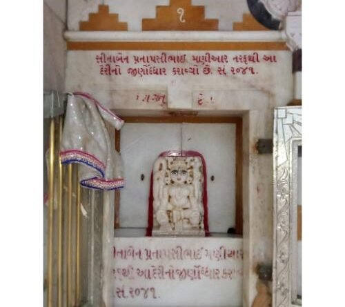 This temple of Shri Shantinath Prabhu is located in Ladwa Sheri. The idol of the Lord is seated in Padmasana posture. It is made of white marble. The temple has been preserved in its antiquity, and the surrounding walls feature deities. These include the idols of Gautam Swami, Navpadji, Vis Viharman, twenty-four idols of the deity, the ruling deities, and other deities. Other idols are located in the Gokhala within the Rangamandapa. The basement also houses idols and other ancient deities.