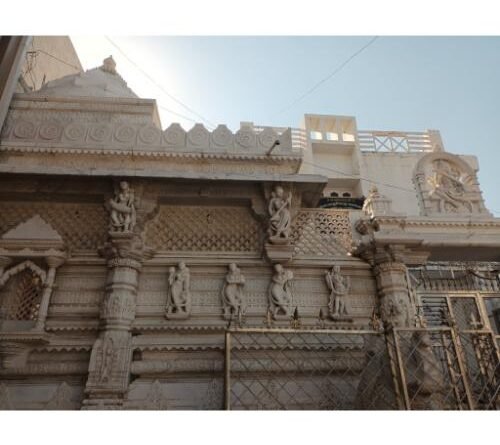 Shantinath Prabhu is the main deity at this shrine. The idol is carved from white stone. The temple features beautiful glasswork. The outer grove houses a metal idol of Lord Shantinath. Pilgrimage plaques have also been installed here.