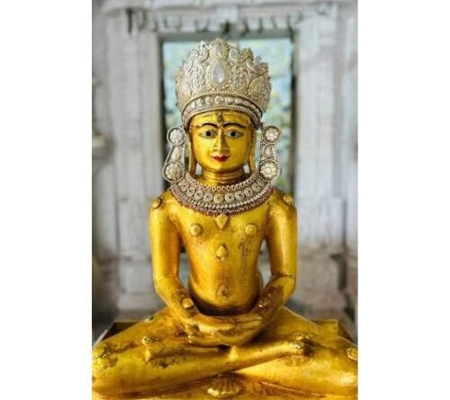 This ancient Panchdhatu idol was recovered along with other idols from a farmer’s field on the border of Sadpur village. He handed it over to the Varahi Sangha. Acharya Vijay Ramsurishwarji M.S. suggested to do movable installation instead of fixed installation and under the guidance of Pujya Acharya Shri Abhaydev Surishwarji M.S., the movable installation of Prabhuji took place in the month of Maha in the year 2046.