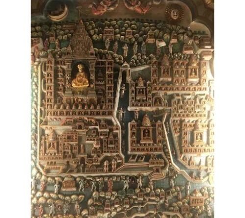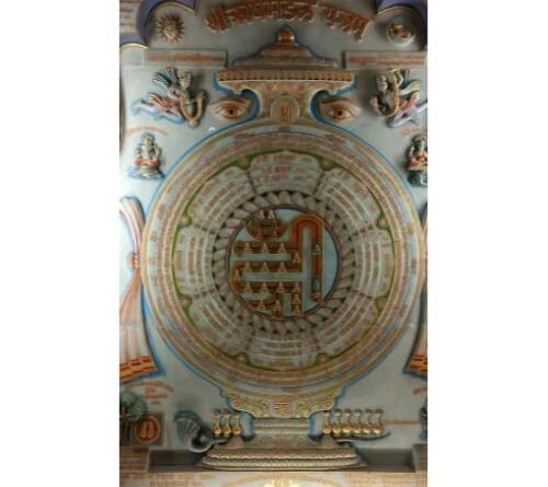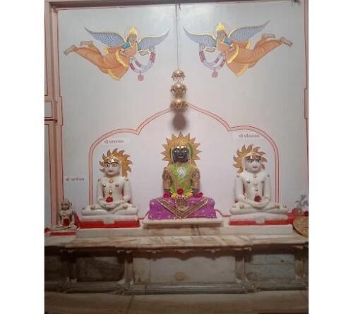 Shikhar Bandh colourful & artistic Tirth with Mulnayak Shri Shantinathji – white, with Parikar,on left Shri Munisuvratswami (white) & on right Shri Padmaprabh (white). Not to be missed is the grand, Rishi Mandal Yantra workmanship. Also, Devi Mandirs of Shri Laxmi, Padmavati, Saraswatiji. Claimed to be over 200 years old.