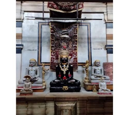 Mulnayak Shri Shri Shaymla Parshwanath Bhagwan, black colour in padmasana posture. In another gambhara the idol of Shri Adeshwar Nath Bhagwan. Both the idols are ancient and beautiful.