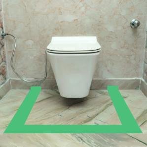 For Toilets: Apply the tape around the toilet base or along the skirting board in the East toilet area.