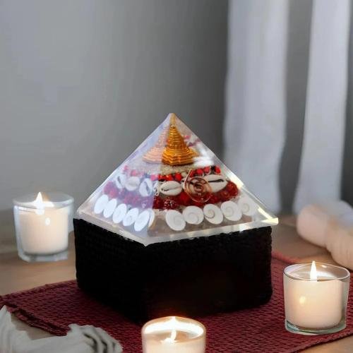 Vastu Yantra Mahalaxmi Pyramid is a powerful Vastu and Feng Shui tool, believed to attract good luck, prosperity, and wealth while removing negative energy. The pyramid shape, combined with the blessings of Goddess Mahalaxmi—the Hindu deity of wealth and fortune—creates a potent symbol that enhances financial success and positivity in your home or workspace.